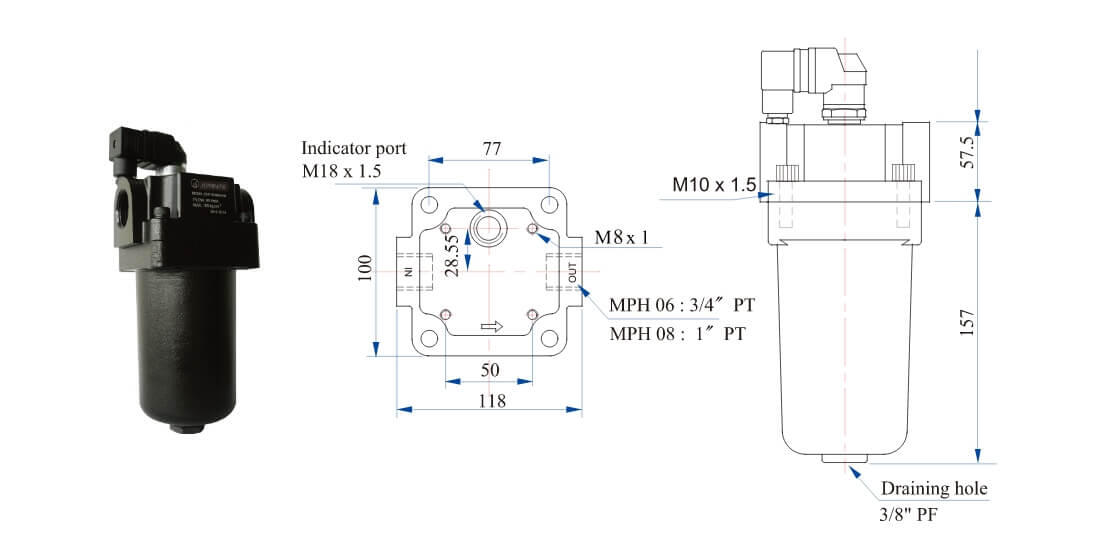 Differential pressure indicator is an optional accessory.